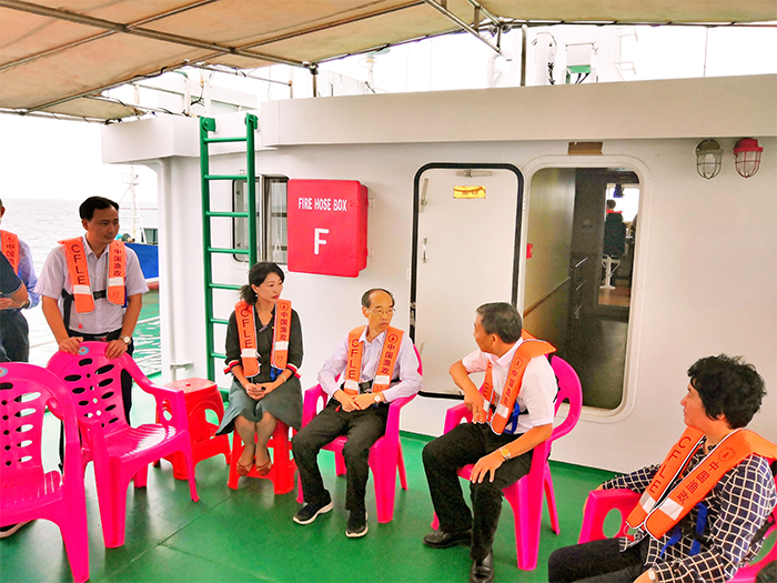 ▲萬鄂湘先生(左三)一行人正在參觀後水灣基地