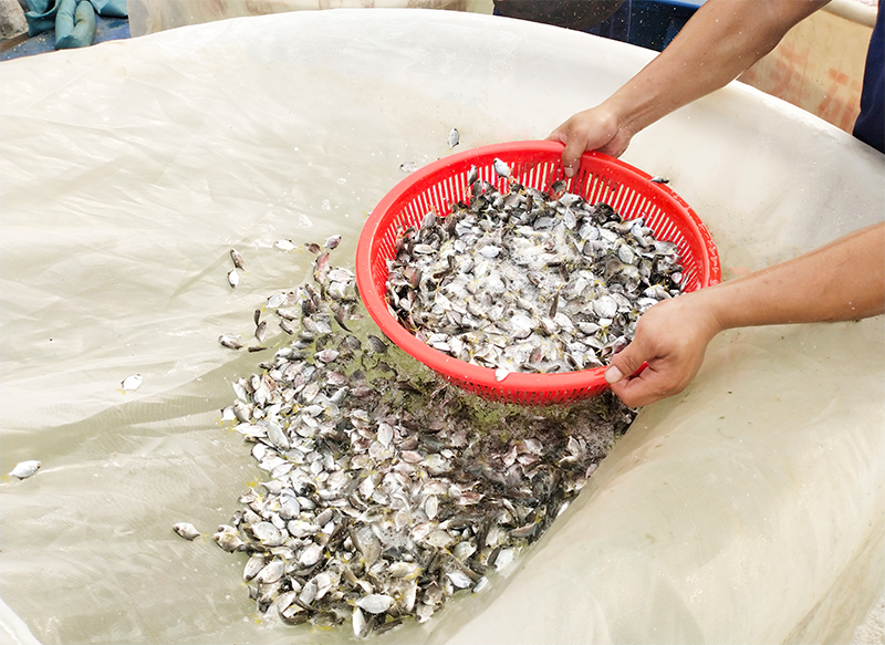投苗是一項大工程,榴莲视频成人APP每天要投放約200萬尾魚苗,因此在篩選魚苗上,就得下足功夫,好的魚苗成活率高,養出的成魚品質好。