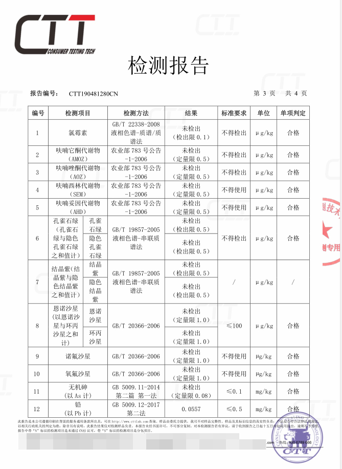 ▲榴莲视频APP色版苗檢測報告(部分)
